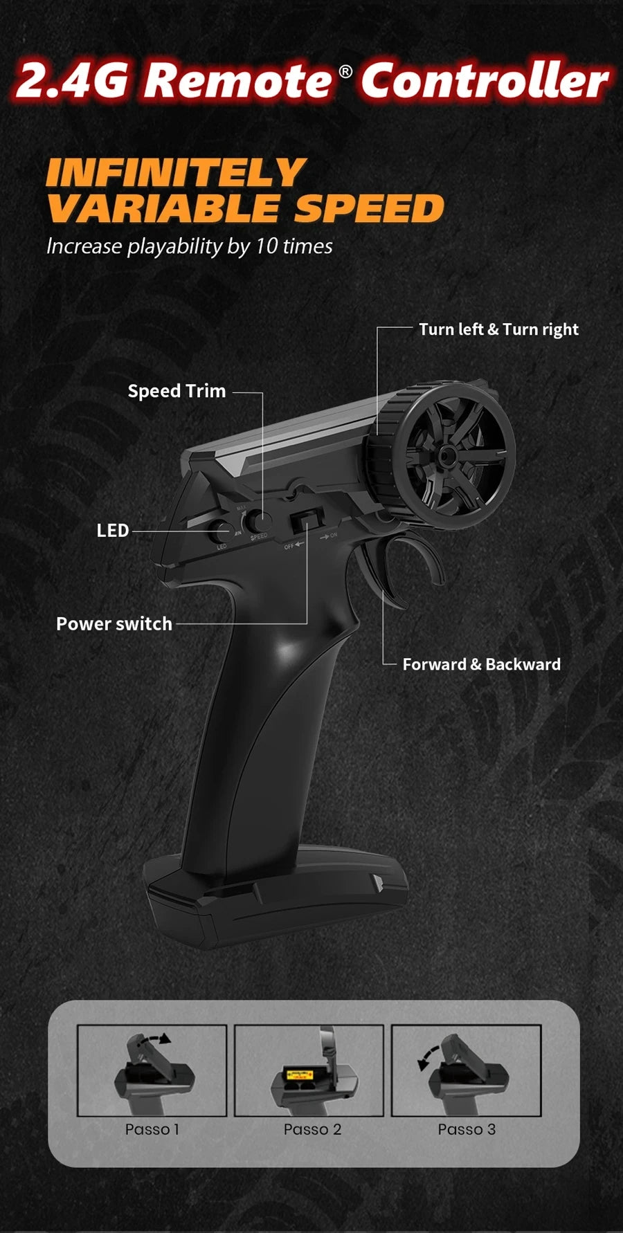 Datorită tracțiunii integrale 4WD și sistemului radio 2.4GHz, oferă stabilitate excelentă, reacție rapidă și control precis fără interferențe.